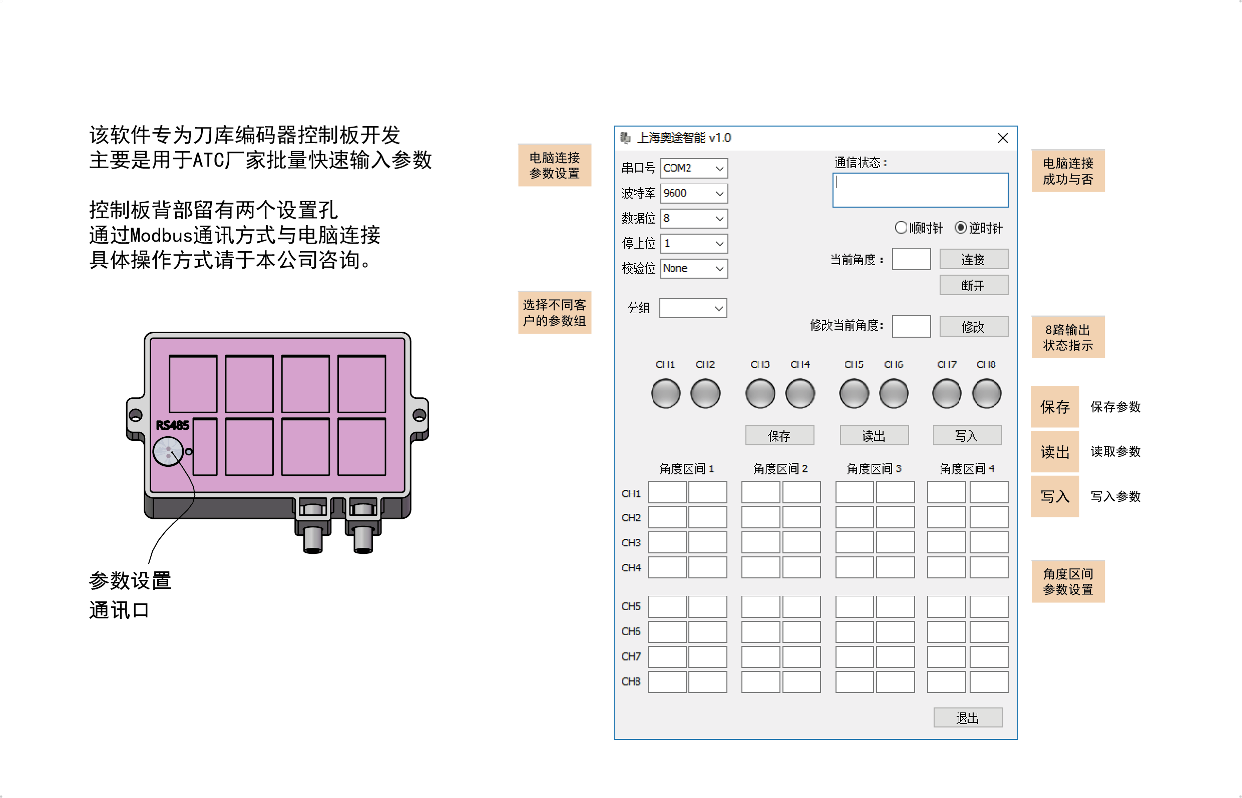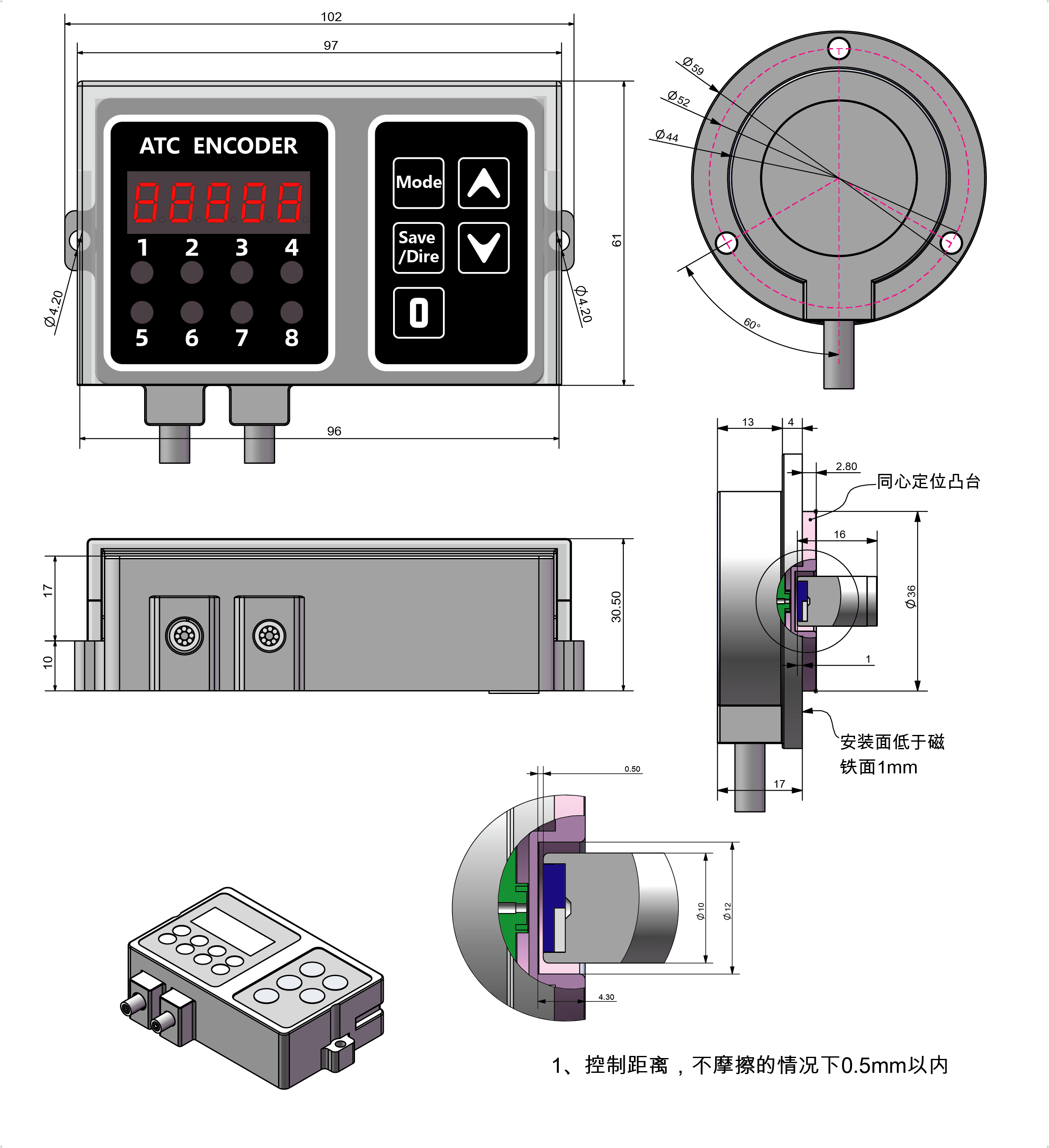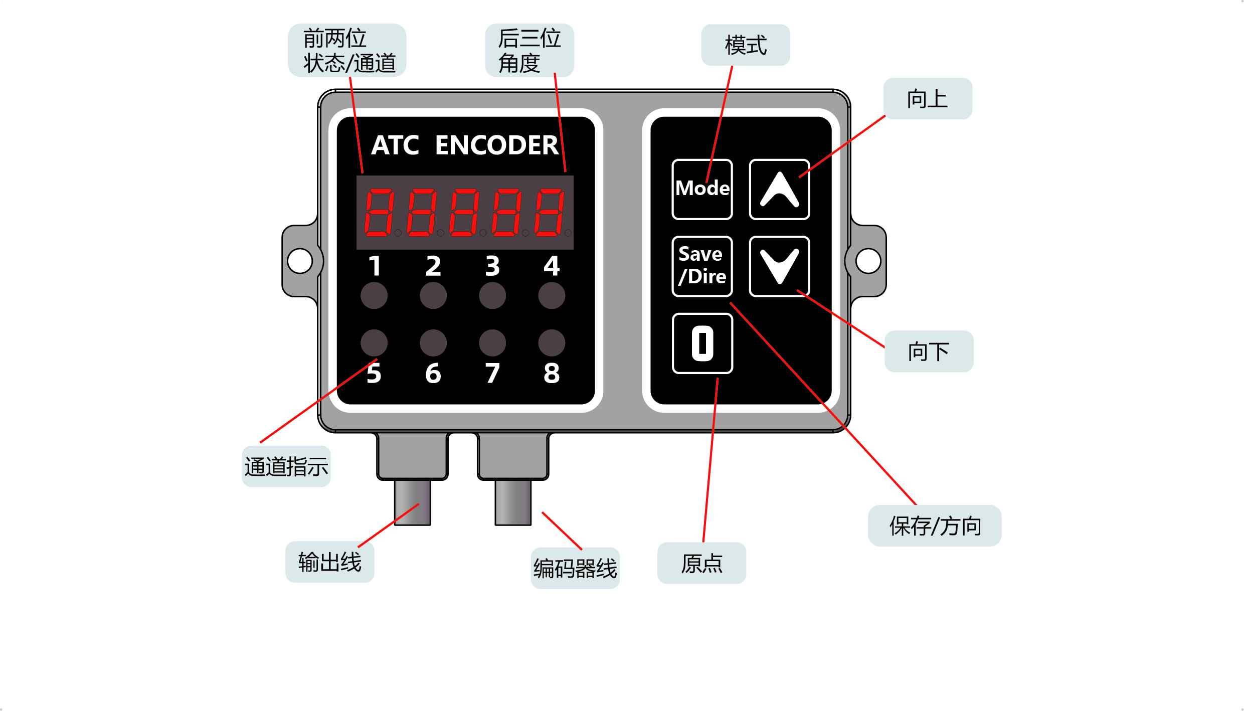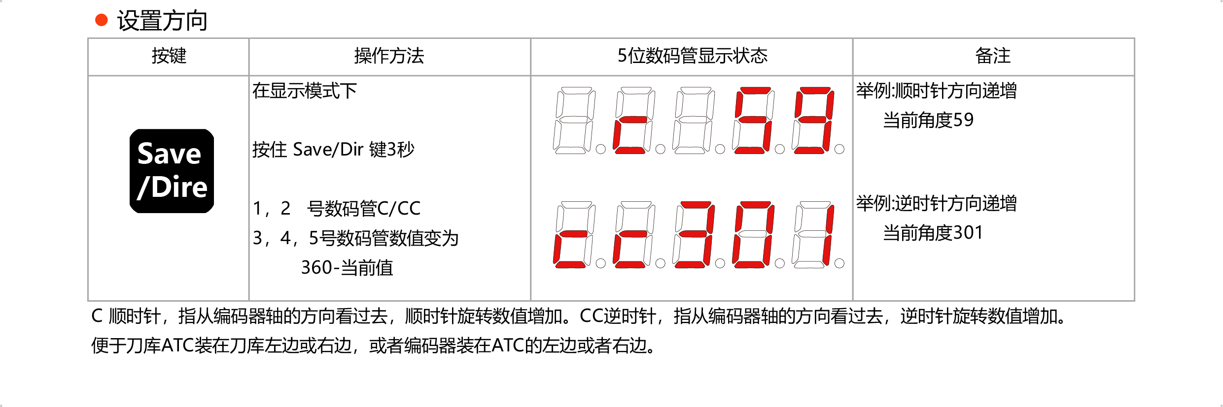 ● 按键切换编码器数值增加或减小的方向,便于ATC装左边或者右边。