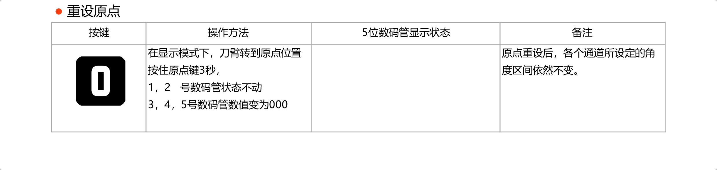 ● 可通过按键将任意位置设为原点,省去寻找调整原点位置的麻烦,消除因机械磨损产生的偏差。