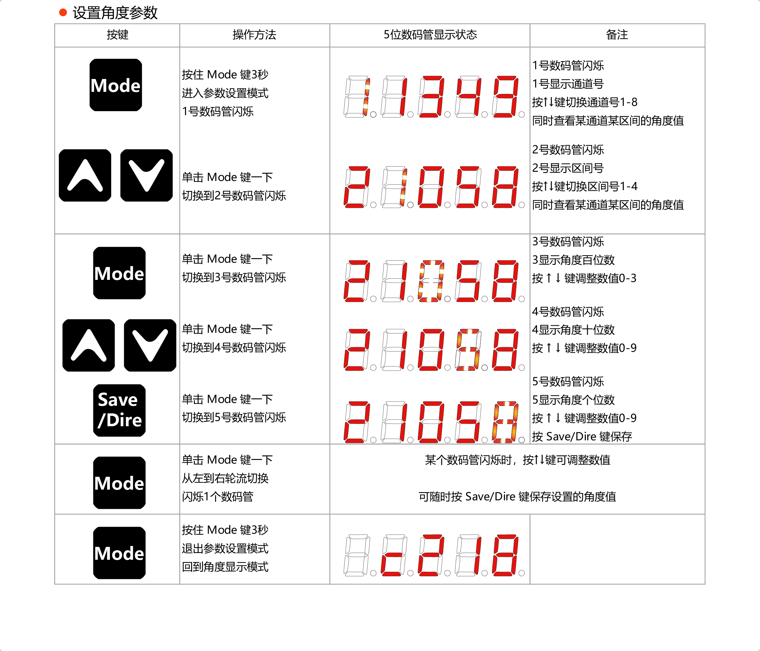 ● 也可通过控制板上的按键设置角度区间。